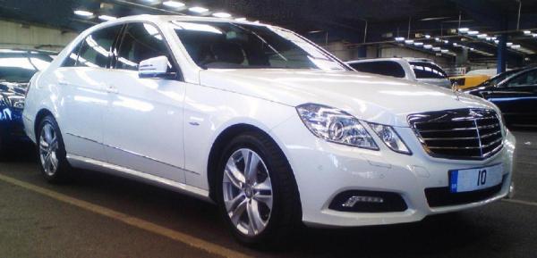 Photograph at top of page, taken three days ago. Mercedes Benz E200 Avantgarde CGI Blue efficiency, Tip Auto, 1.8, petrol, Calcite White. Full black cow (sorry – full leather interior) and parking sensors. 14,500 warranted miles. First registered May 2010. One owner. Guaranteed as having no major mechanical faults by the auction house and vendor. Sold this Monday for £29, 100 ($46,269) at auction.